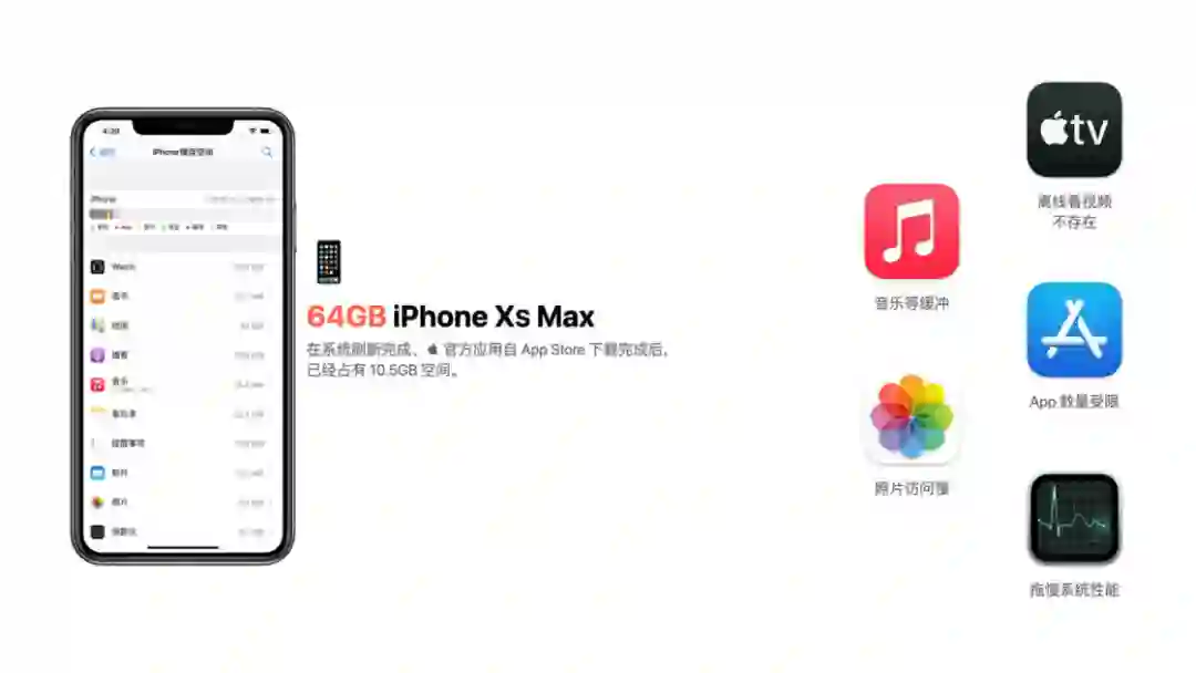 最后,手机存储空间剩余容量对手机整体性能是有影响的。AnandTech 上的文章建议将 SSD 固态硬盘上的空间保留至少 25% 以保持其性能。这就意味着,一台 64GB 的手机,大约在 40GB 空间占满的时候就可能会产生 SSD 在写入上的性能问题。而我之前最少曾经只留下了 4GB。那段时间,手机的确是有不少卡顿现象出现 —— 即使是 A12 也无法应对这种物理上的限制。