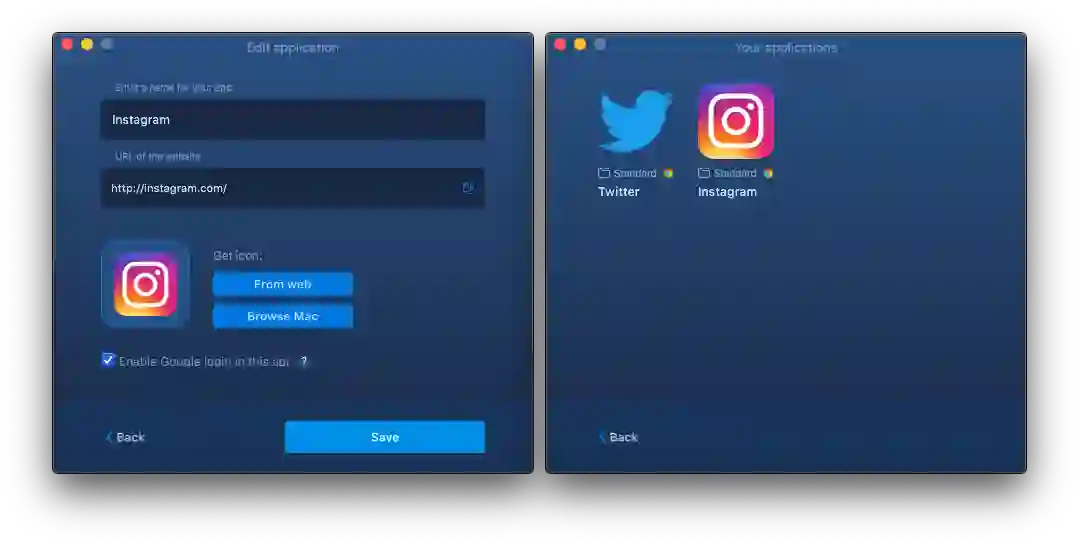 根据我的经验,如果将支持 PWA 特性的网页使用 Coherence X 封装之后的体验还不错。例如下方的 Instagram,左侧是 Coherence X 封装的应用、右侧是 iOS 版本的应用。而不支持 PWA 特性、甚至非响应式设计的网页,建议使用浏览器直接访问。