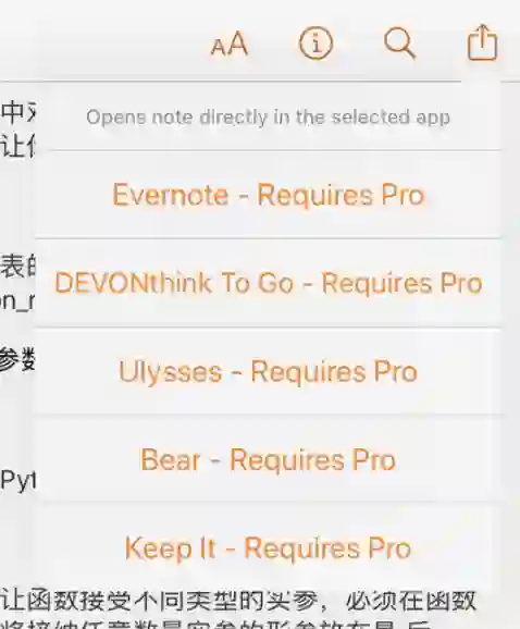 基于备注,Highlights 支持将备注信息导出为其它格式,免费版本可以导出为 PDF,如果购买 Pro 版本可以导出为 HTML 或者 Markdown 格式文件;对于需要通过其它笔记工具整理备注的用户而言,Highlights 也支持将笔记直接导入第三方平台,比如说 Ulysses、Bear 或者印象笔记等,当然这个功能也需要购买 Pro 版。