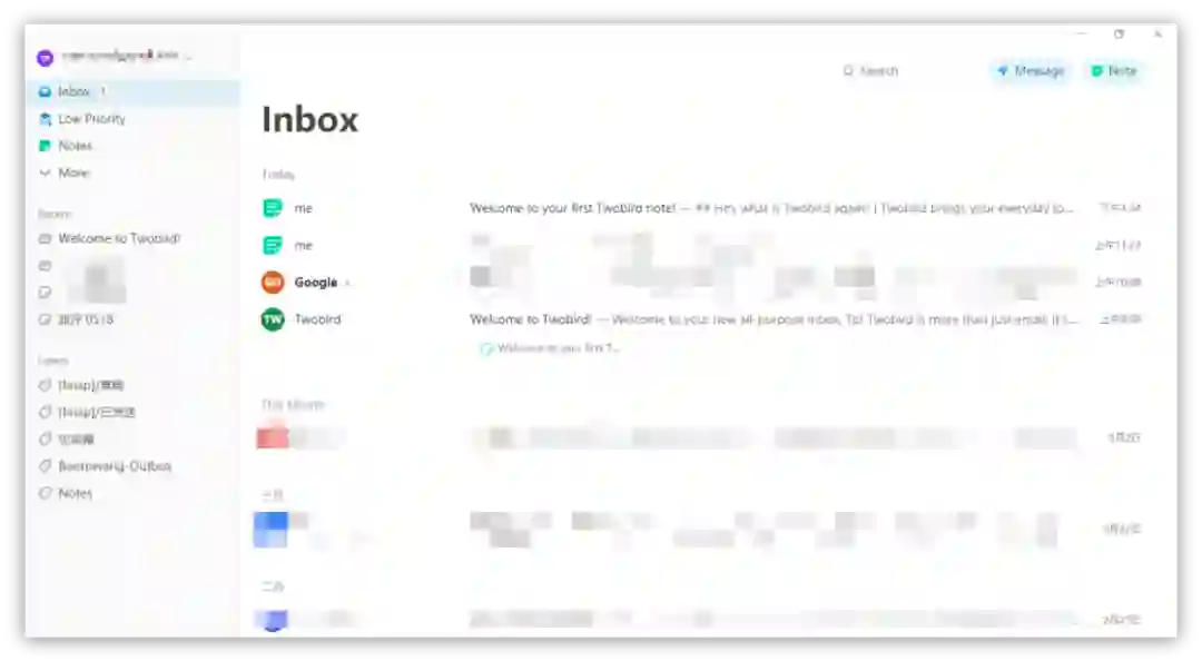 Twobird 拥有与 Spark 类似的智能收件箱,应用只会在「Inbox」里展示那些有用的邮件,比如工作邮件、警告邮件等。订阅邮件、广告邮件等内容则会被放到「Low Priority」的分类下,且不会显示未读数量。Twobird 也支持帮你管理订阅邮件,对于那些可能需要退订的邮件,它会放在「Unsubscribe」分类下等你手动退订。