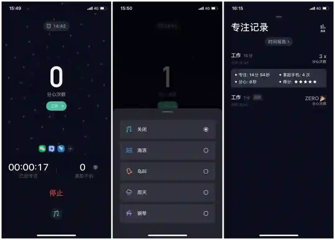 在新版中,白名单在专注开启后进行调节,你可以随时增删白名单应用,确保专注不会被轻易打断。当然,新模式对于用户的自制力考验也有所提升,毕竟你现在可以随时把游戏加进白名单里了。