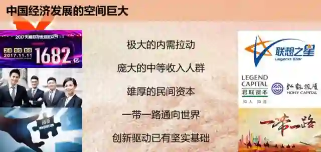 首先是消费拉动,以前中国人主要是拿自己的资源、劳动力做出来的东西到外国去卖,因为中国人穷,没有这个市场基础,人多并不等于能买得起东西。而现在中国已经有了一个非常丰厚的中产阶级的人群,有足够强大的内需基础。同时中国也有了非常雄厚的民间资本,加上有“一带一路”引领我们走向世界,同时我们的创新驱动也有了坚实的基础,发展空间可谓巨大而空前。