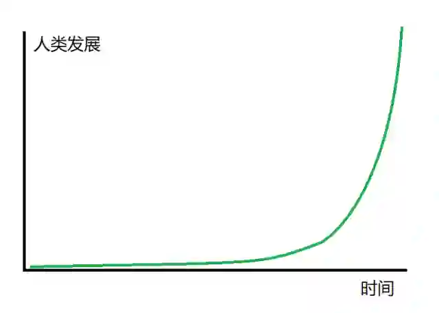 根据人类发展的曲线,前边2000多年都很平稳,直到近200年的时候开始有蒸汽机、有电,曲线才开始往上升;到了有电脑的时刻,就开始陡升;后面有互联网,移动互联网增长得更加陡直;再往下,科技创新跟人工智能、物联网、生命科学结合到一起,那将会一个非常陡直的曲线。