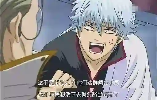 笑料以外,《银魂》其实为我们展现了人生的另外一面。它直言不讳地告诉我们,生活不仅有“友情,热血和努力”,可能还有秃顶——“压力是导致秃顶的原因,所以请注意不要压力太大,但这样一来反而容易堆积压力,所以归根到底我们无能为力。”而很多时候丧的到来,就像秃顶一样,让人措手不及,又无能为力。在《将军暗杀篇》中,银桑他们为了保护将军,付出了巨大的代价,振奋了,燃烧了,拼尽了全力。成功在望之际,将军被轻而易举地害死了。人生不是想当然,努力也不一定能有大团圆结局。就像贫穷会像慢性鼻炎一样若即若离,痛苦也永远不会彻底消失。能够聊以自慰的只有:“你以为人生很痛苦了,其实今后会有更多痛苦的事儿等着你,这么想的话,就能坚持下去。”