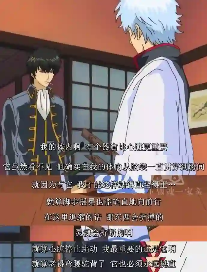 所以,《银魂》打动我们的不是简单的嘴炮和毒鸡汤。而是,当我们对着“阿姆斯特朗回转加速喷气式阿姆斯特朗炮”露出猥琐笑容的时候,我们知道纯真的少年时代已然远去。通过银桑,我们确认了自己日渐长成。我们越来越理解他肩上所背负的担子,理解他油滑与世故背后的真情,也理解他颓废和荒唐背后的担当。就如同理解担负起其他人人生之后的我们自己。