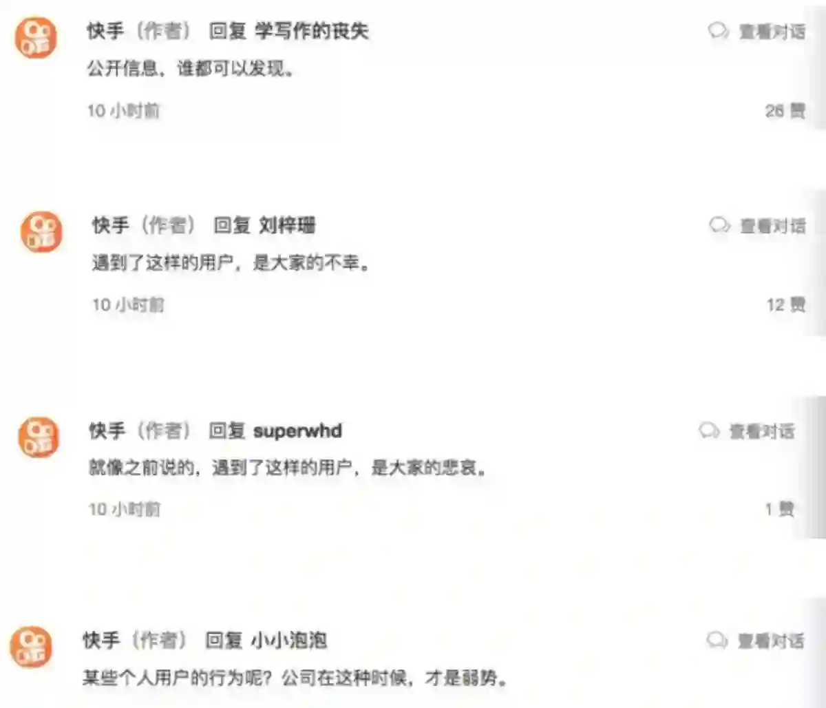 在事件被曝光后,快手被扣上了公开用户个人信息的帽子,但快手在官方回应中表示,员工获取用户信息的方式来自公开信息,并认为,“虽然他是快手员工,但他使用的权利任何普通互联网用户都拥有”。