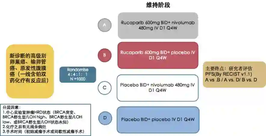 ANTHENA(GOG-3020/ENGOT-OV45)卵巢癌一线含铂化疗之后Rucaparib+Nivolumab 2/3期随机、双盲、安慰剂对照研究设计公布