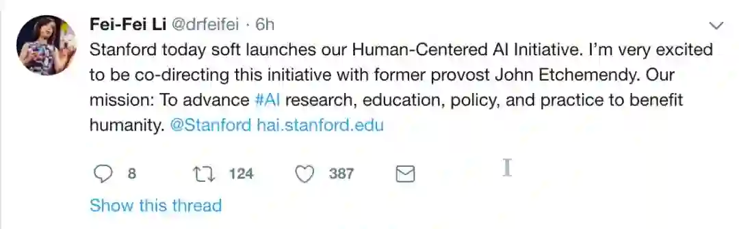 随后,李飞飞在推特上对此表示:我们的愿景是推动 AI 研究、教育、政策和实践,为全人类谋福祉。
