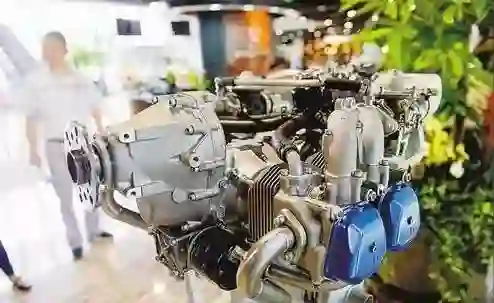 现在,宗申动力造出的C115型航空活塞发动机样机就摆放在办公楼大厅内。