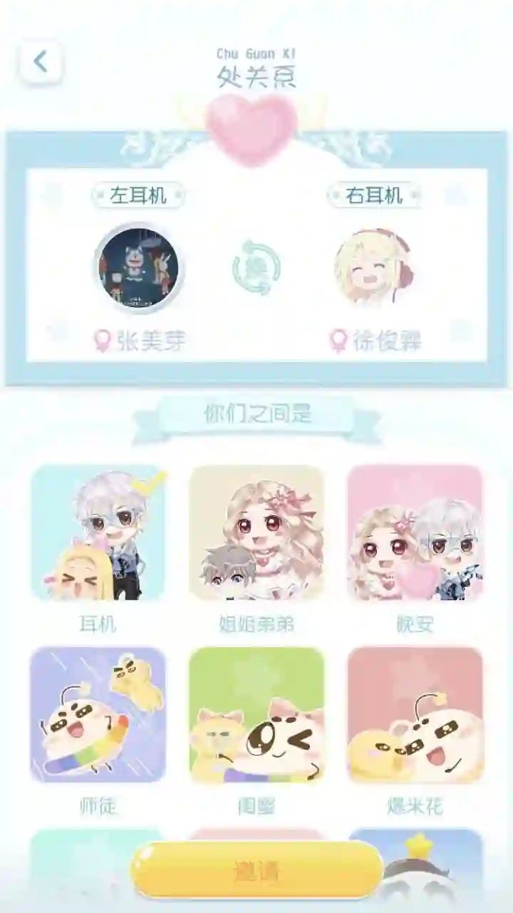 在小肚皮APP内的「处关系」界面里,还有很多听起来让人摸不着头脑的关系,比如「晚安」关系、「耳机」关系、「爆米花」关系等。