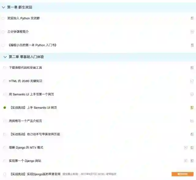 9月1日开始,网易云课堂的Python Web微专业推出了限时免费的体验课。这门课程主要从零基础入门体验入手,除了大约60分钟的视频课程外,还包括两个实战挑战,分别是『上手Semantic UI 网页』以及 『自己动手写苹果官方网页』。整个学习过程,都会配备助教,第一时间响应答疑需求。