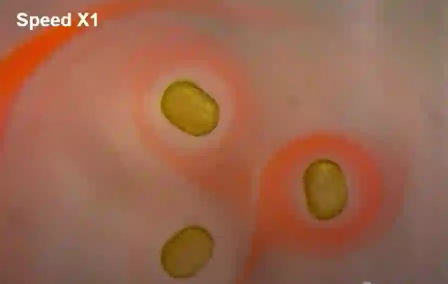 这些液滴相互吸引,宛如一组花样游泳运动员,以完美的一致性动作,形成一个优雅的漩涡。刘绪博说:“仿佛是舞蹈的小液滴。”