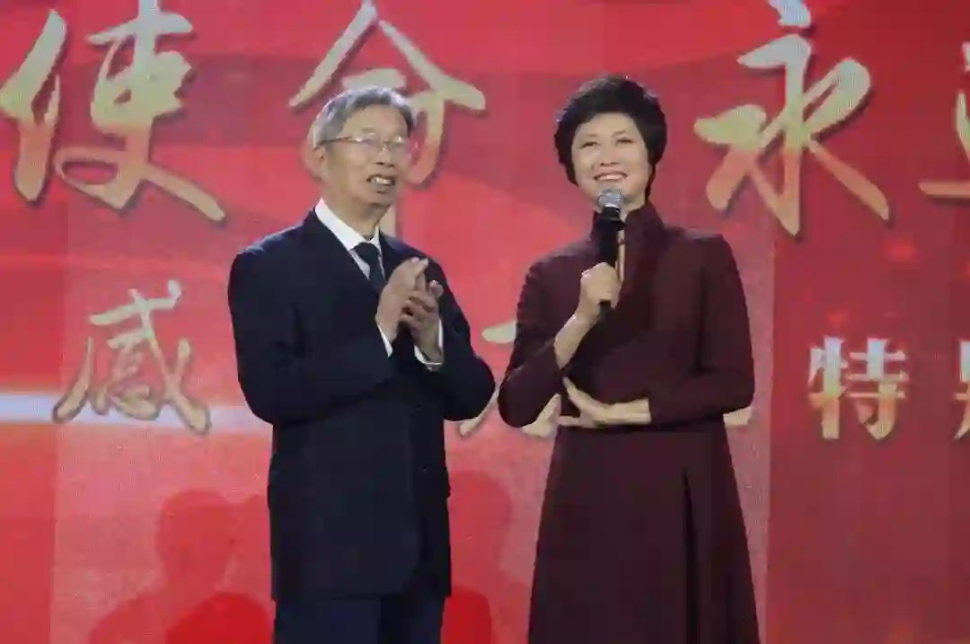 主持人敬一丹为陈俊武(左)颁发感动石化人物奖