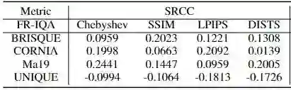 在感知鲁棒性评估方面,我们采用斯皮尔曼秩相关系数(SRCC)进行衡量,SRCC的值越高,代表NR-IQA模型的抵御对抗攻击的性能更佳,即鲁棒性更好。