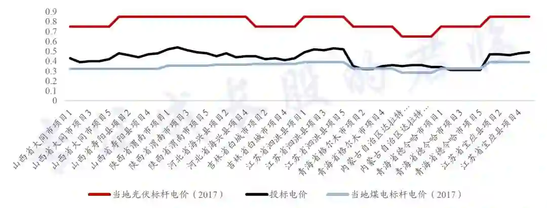 第三批领跑者计划投标电价与当地光伏标杆电价及煤电标杆电价