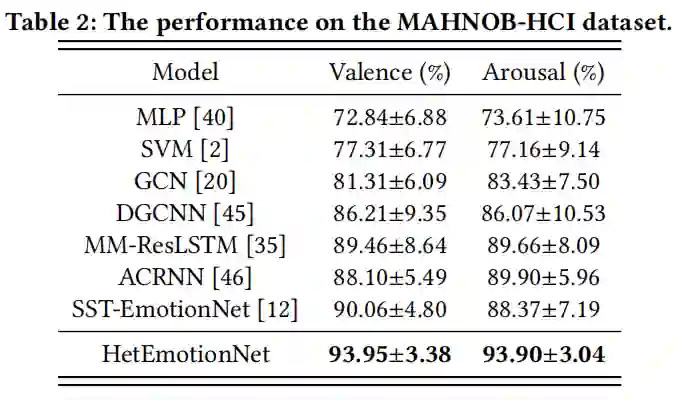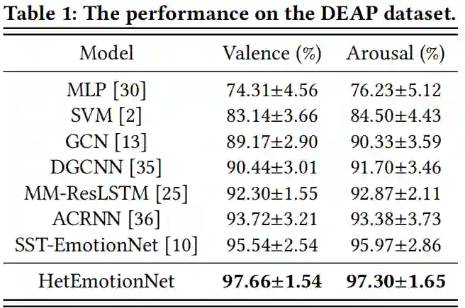 HetEmotionNet 在两个数据集上均取得了优于所有基线方法的性能。我们认为模型分类性能提升的原因有以下几点: