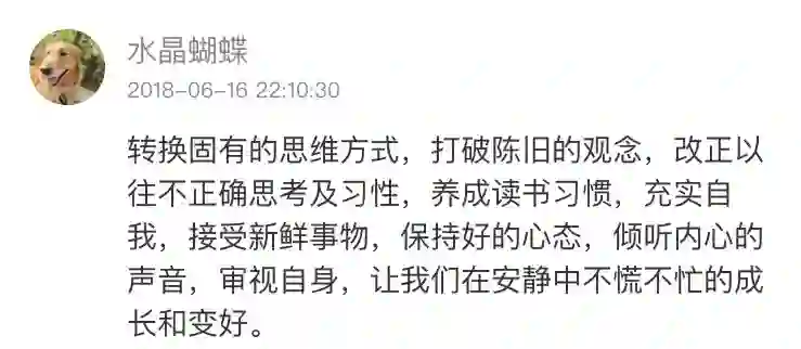 不断学习、读书,学会转换我们的思维,为自己活出另一种风采。