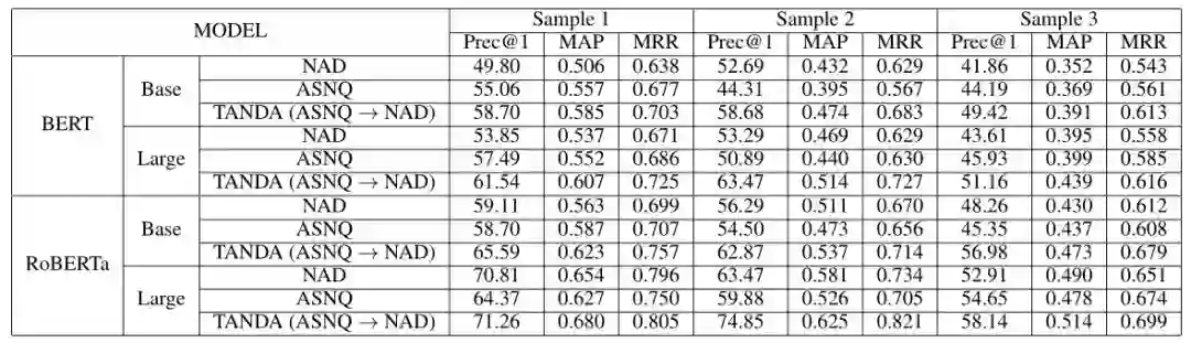 TANDA 的处理方式是在通用数据库和目标域数据库中分别做精调(一次 fine-tuning → 二次 fine-tuning)。这里有一个很直观的质疑,同时在通用数据库和目标数据库中训练+精调是否也可以达到同样的效果且节省处理时间?但是实际上,这样的组合很难优化,因为在精调模型步骤中,处理目标数据与处理通用数据所需要的权重并不相同。作者在后续的实验中专门针对这个问题进行了验证,即在通用、目标数据库中做两次精调处理的效果优于在合并的通用+目标数据库做一次精调处理的效果。