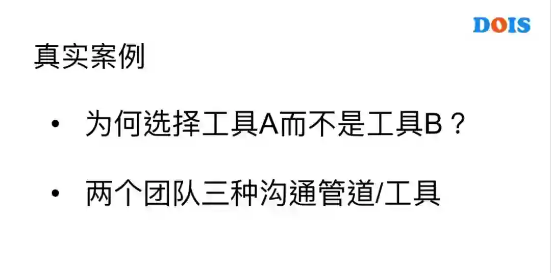 所以为何选择工具A而不是工具B,有时候不只是因为技术选型的缘故。另外的案例就是明明只是两个团队却使用了三种沟通管道或工具,我实在不知道这两个团队到底是要怎么有效沟通,这是一个很恐怖的状况,这也是常见的误区。
