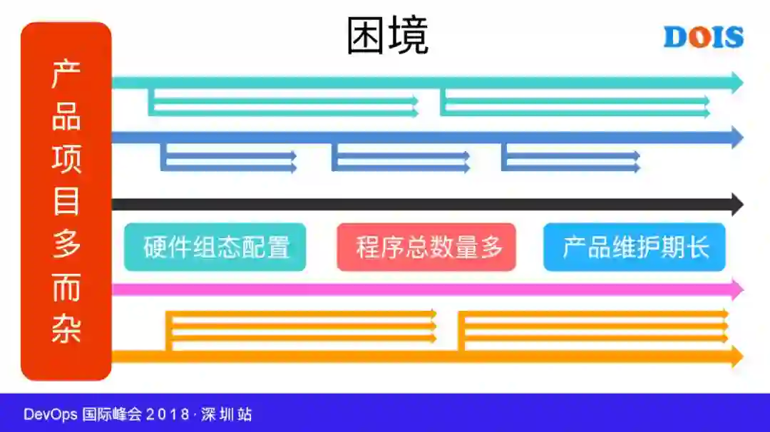 先从一个由技术面切入,后来确实把文化或价值观带入团队当中,来自嵌入式装置行业的案例,状况是这样子的,他们产品我就不介绍了,因为不是跟议题有关系,他们产品的维护期都比较长,产品项目多而复,有非常多的产品线,产品线多而且复杂。