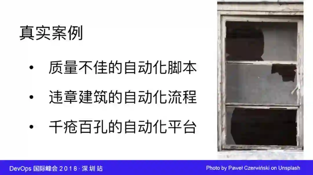 现在来看看这个案例,自动化平台能否兼容遗产与新的项目,自动化平台能否兼容巨石架构跟现在很火的微服务架构,或者这个自动化只能适用新项目,旧项目依然要人工处理,或者这个自动化只能帮你解决新的问题,旧的问题就不管了,这也是我们实际上曾遇到的问题。
