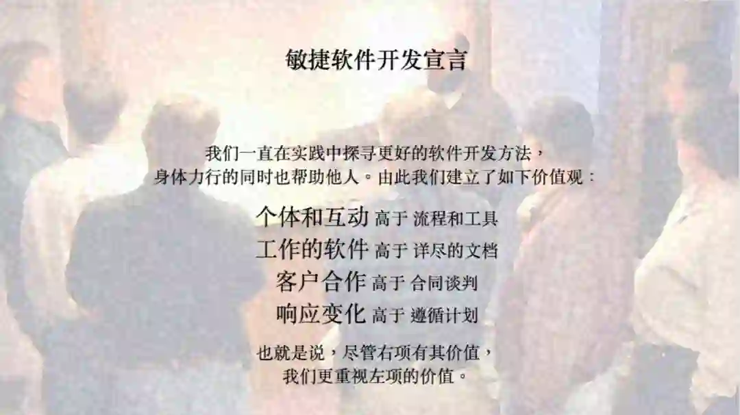 我们也可以从敏捷软件开发宣言来看这件事,个体和互动高于流程和工具,工作的软件高于详尽的文档。