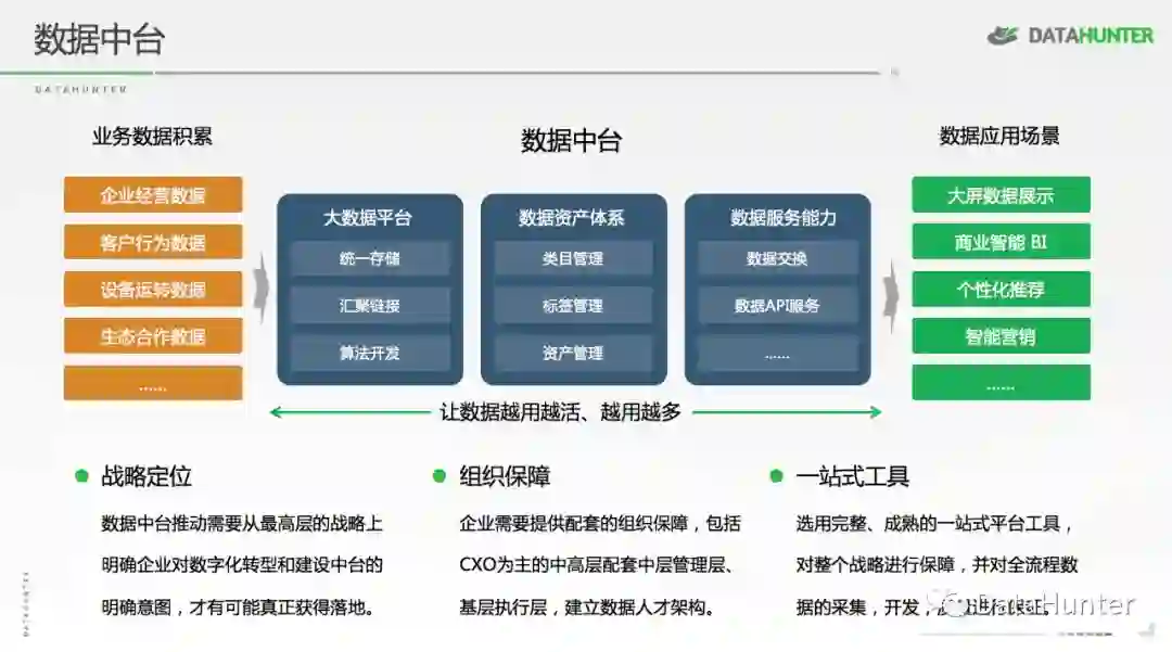 2.数据中台是一种支持以用户为中心的持续规模化的创新,并想方设法持续提高企业对于⽤户的响应⼒;