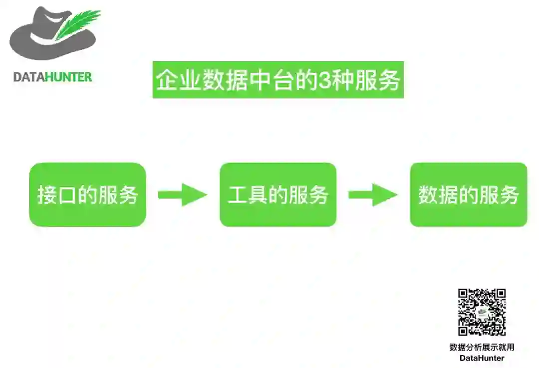 数据中台主要提供三类服务:依赖接口的服务、依赖工具的服务和依赖数据的服务(包括垂直数据中心、公共数据中心和萃取数据中心)。