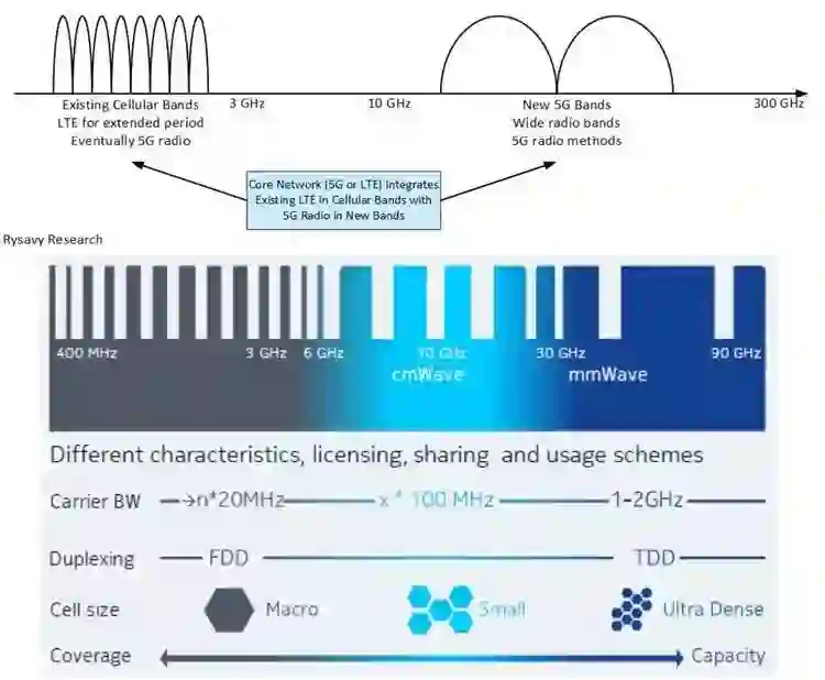 而根据 3GPP 的说法,5G 将支持从 1GHz 到 50GHz 左右的低频,中频和高频频谱。由于与 4G 拥有共同的频谱,意味着下一代电信网络的转变将是渐进式的,5G 网络将结合使用 4G LTE 频段、频谱和逐渐更新技术来提高传输数据吞吐量,换来更快的速度。我们将在很长一段时间内依赖已经完成的 4G LTE 网络进行工作与生活,