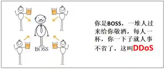 假设你是个妹子,你因男朋友被一位女性敌视,但是你男朋友的处理能力十分强大,处理速度已经高于她的请求速度,于是她雇佣了一票女性来轮流麻烦你的男朋友,这叫分布式拒绝服务攻击,简称 DDOS。