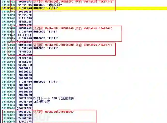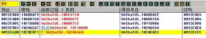 0012E09C 1011DD8B WeChatWi.106BD753 WeChatWi.1011DD86 0012E098