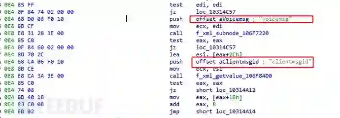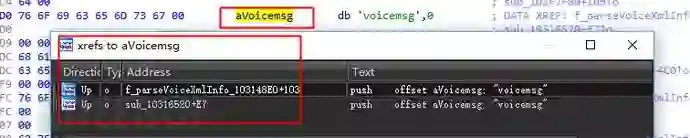 后来又回神想到了逆向神器IDA,xml中数据如voicemsg肯定是模块中会在代码中用到,看看有没有有用的信息。