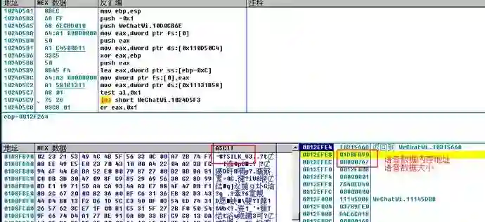 找到了解析语音xml数据和解码语音数据的关键函数。