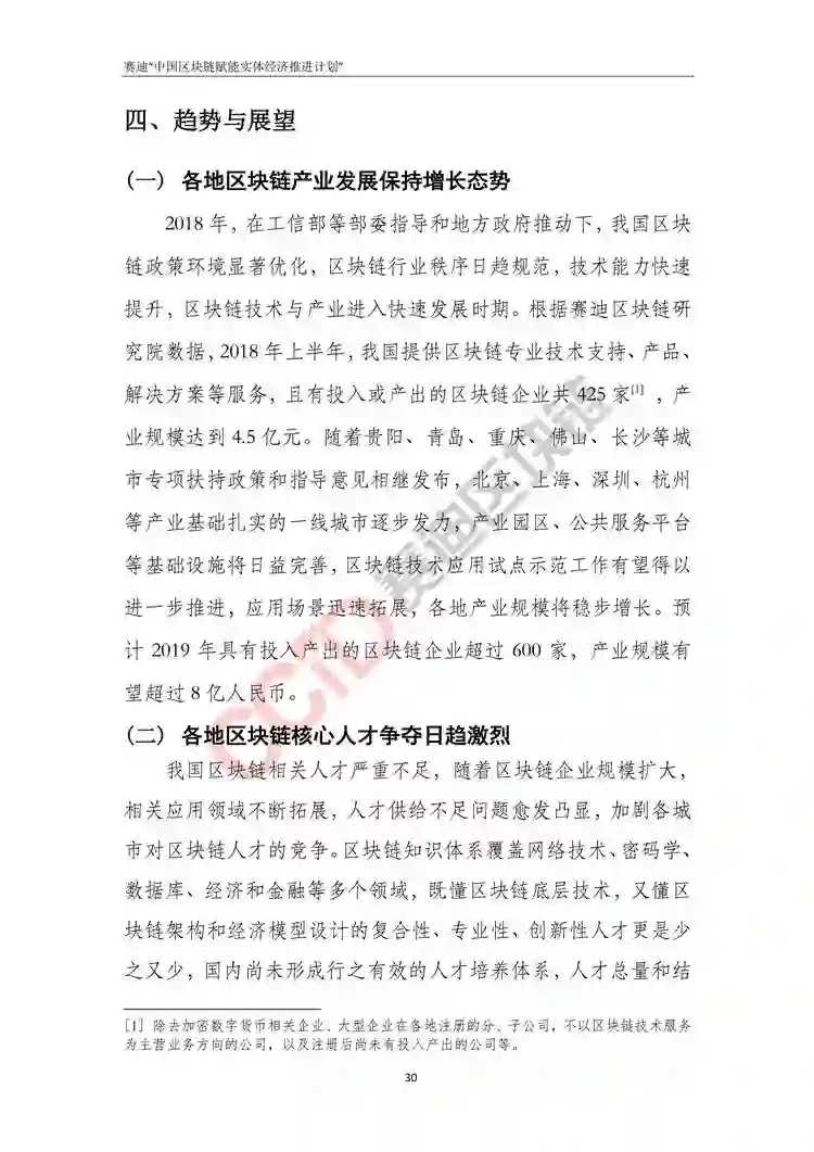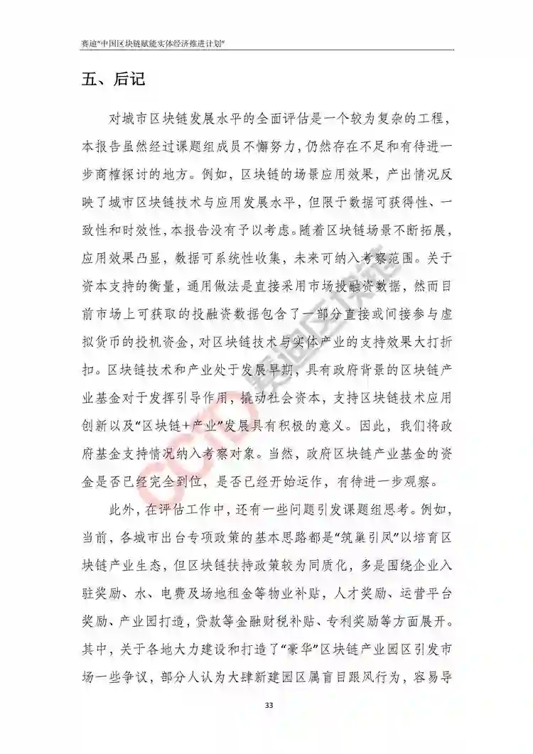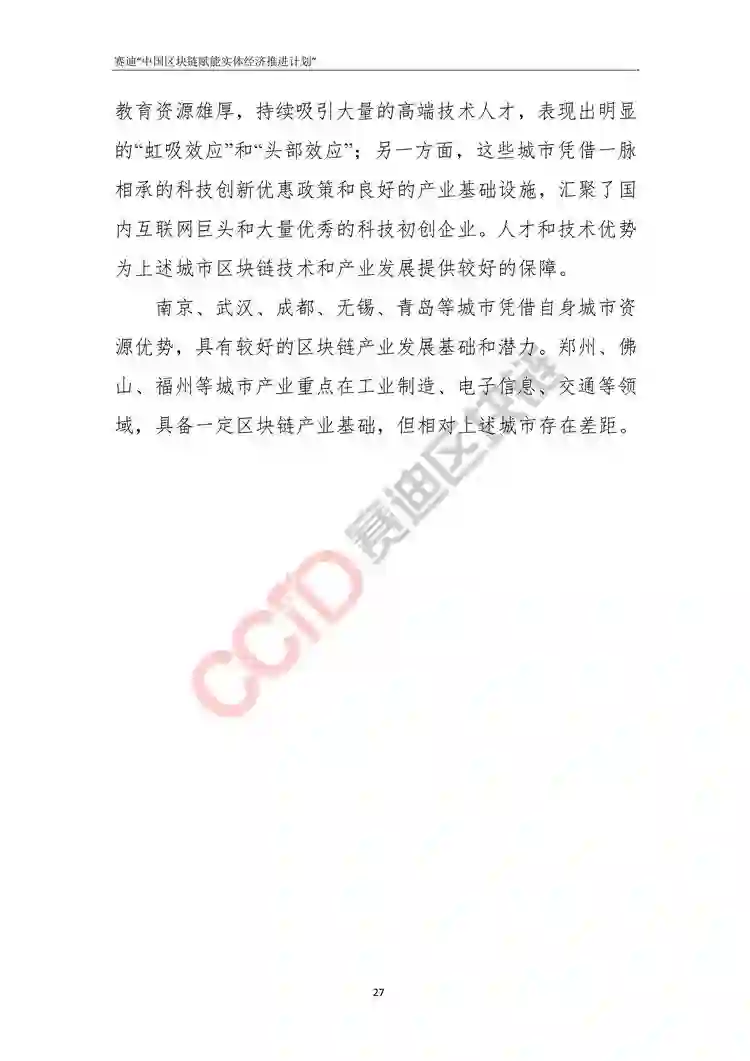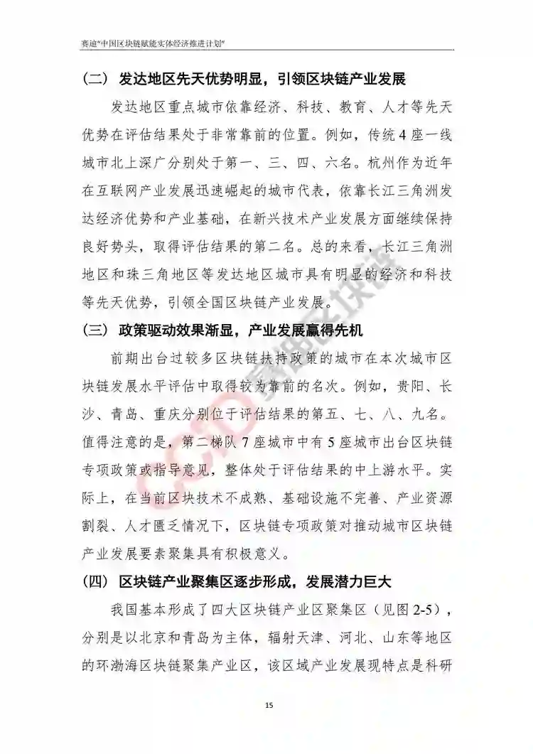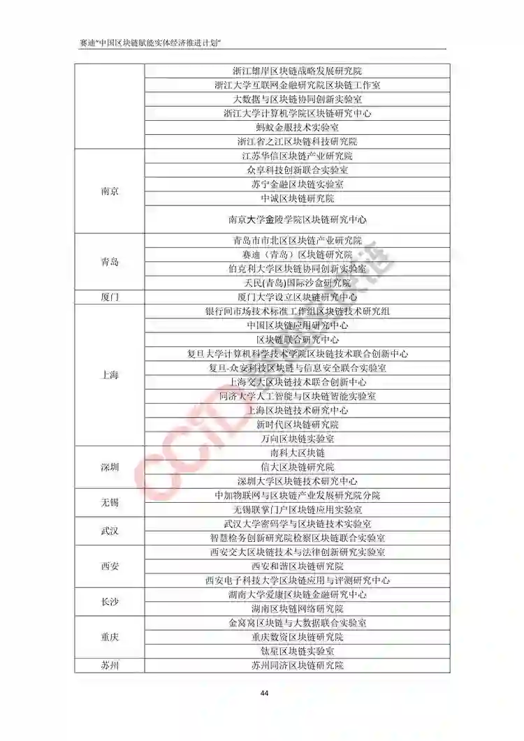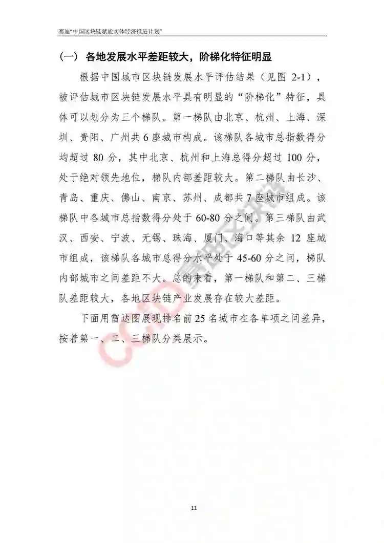 2018年12月7日,赛迪(青岛)区块链研究院发布了《中国城市区块链发展水平评估报告(2018年)》,报告从政策环境、科研实力、产业基础、资本支持四个方面对中国45座重点城市的区块链发展水平进行评估,并评选出中国城市区块链发展25强。
