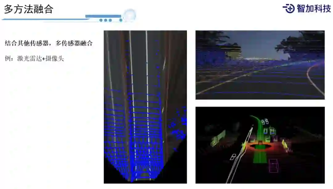 另一种更常用,更安全的方法就是激光雷达,进行多传感器融合,如将激光雷达投影到image,可以很轻松的建模出可行驶的道路和障碍物。
