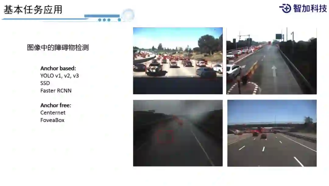上图是一些比较有挑战的场景:拥挤的路况、远处的障碍物、雨天、穿过高架桥等。障碍物检测比较成熟,这里不再细讲,常用的算法有: