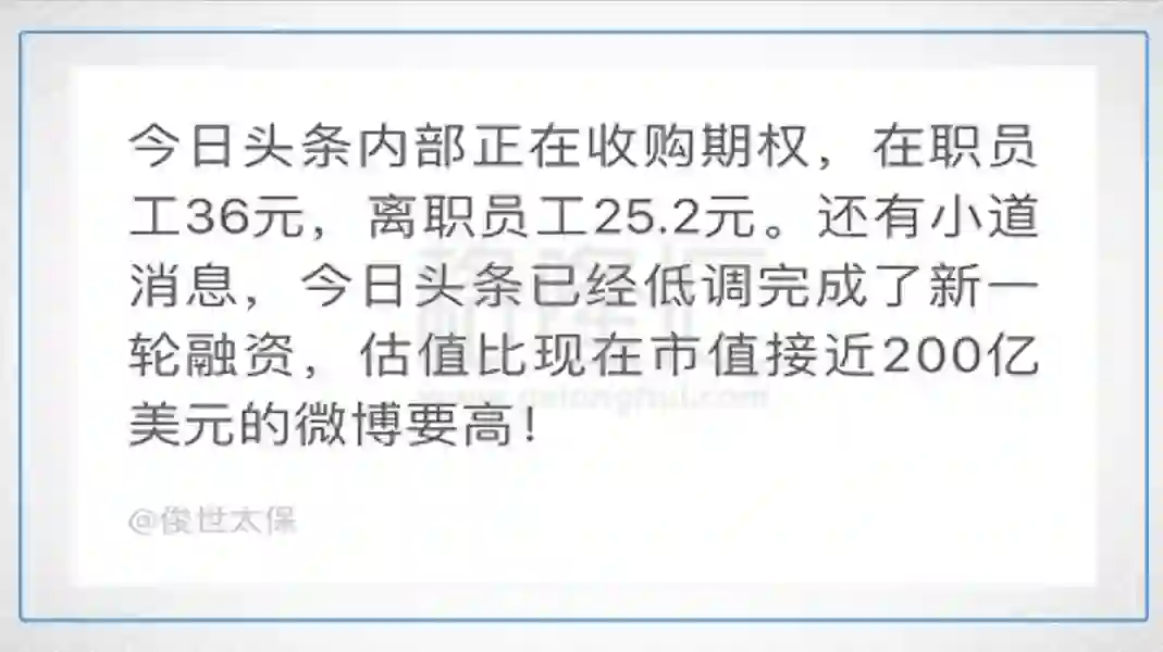 今日有消息,今日头条已经估值200亿美金!