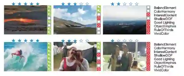 图7 AADB数据集示例,提供了8种美学因素的二值分类评价