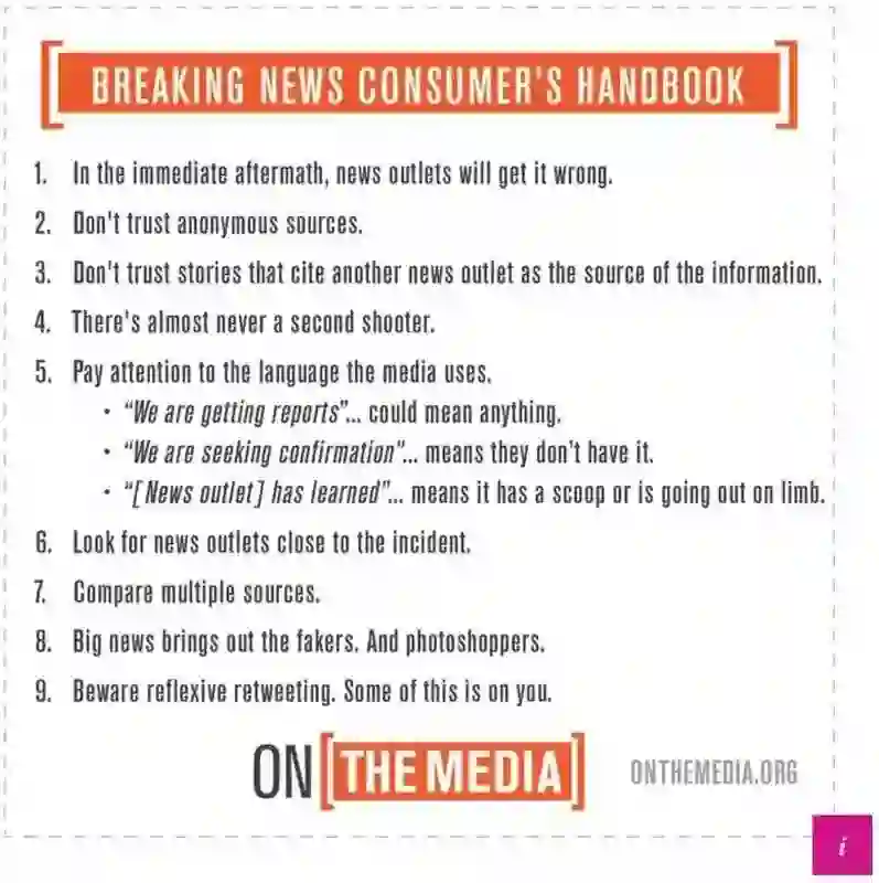 “这张图基本总结了突发新闻时一个新闻消费者应该注意的要点,怎么理性有效率的选择新闻,而不是疯狂转发相关信息。我觉得在现在的媒体环境下这样的判断力特别重要。”他说。