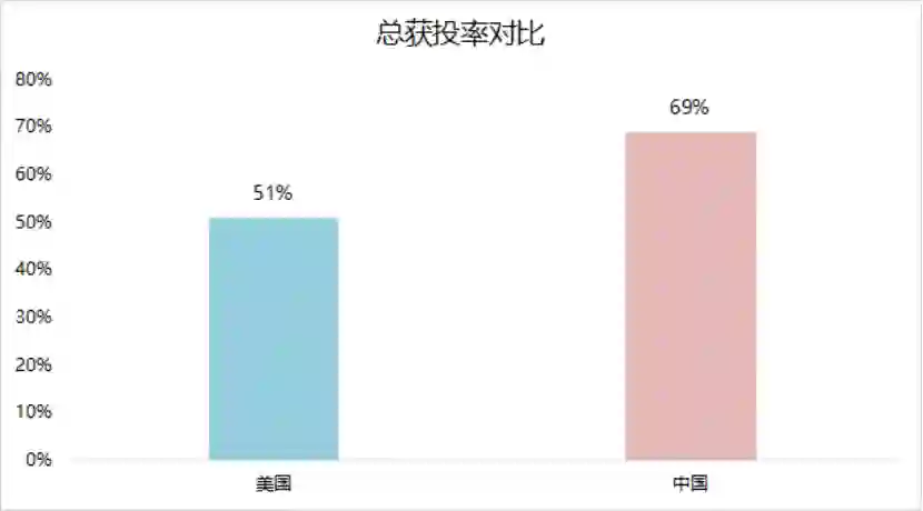 美国AI存量市场远超中国,但投融资速度与获投率中国更高美国一筹,对于AI初创公司来说,中国环境更适合创业。