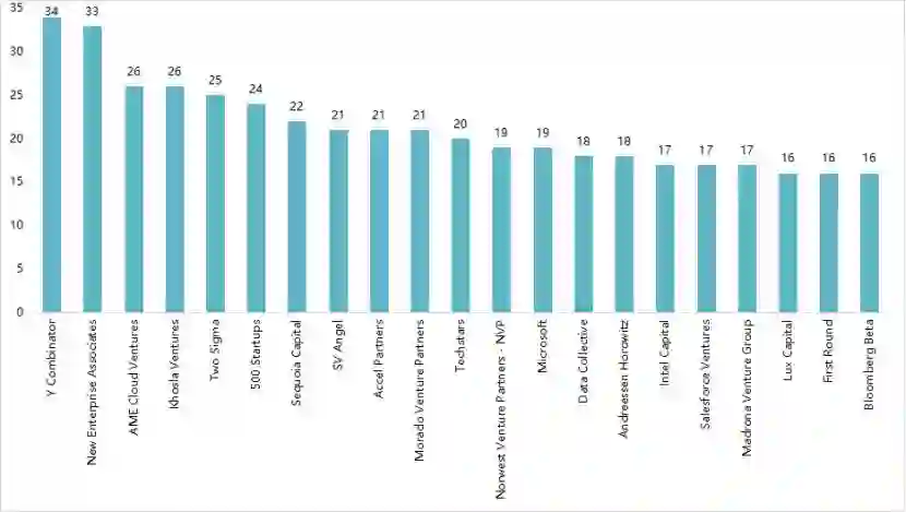 其中,Y Combinator投资了34次包括Sift Science,Chute,Qventus和SimpleLegal在内的25家人工智能企业,其中Sift Science 获得了包括Founder Collective, SV Angel, Y Combinator在内等17家投资方总计3.64亿元投资,而Y Combinator参与投资的其余AI公司获投金额从76万元到1.14亿元不等,轮次也零散分布在天使/种子轮,A轮,B轮和C轮。