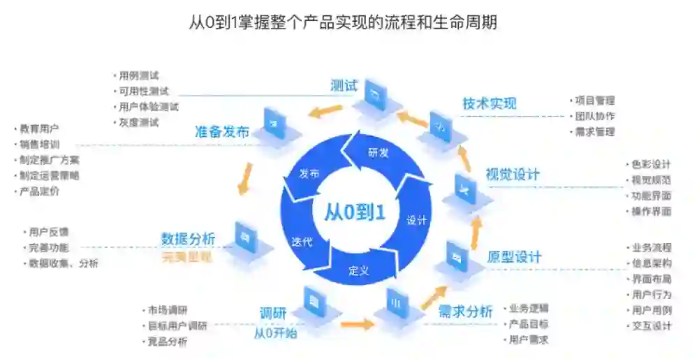 2、了解产品从0到1全流程,掌握一套完整的产品知识体系。