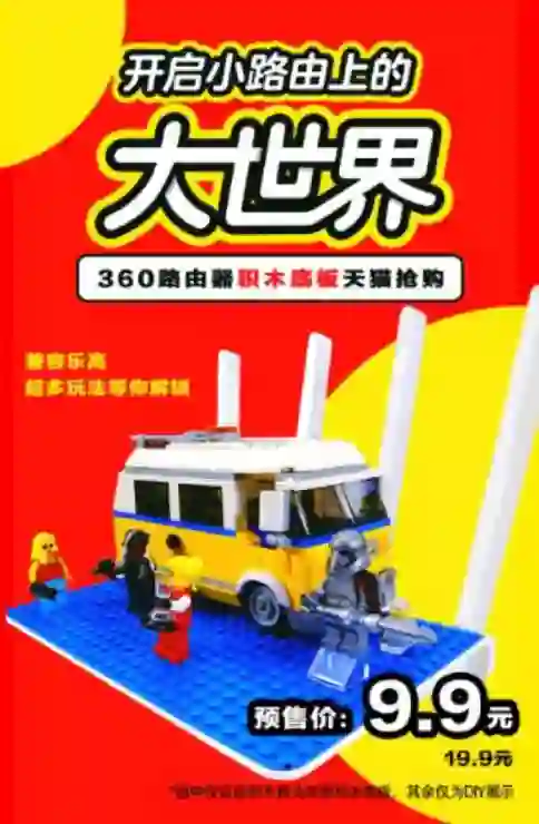 好吧,包豪斯广场千人围观一台路由器的活动已经结束了,你如果想拥有一台带有你个性的路由器,享受动手和创造的乐趣,那么你先得有一个360安全路由P4C的积木底板,记住,预售价9.9元。