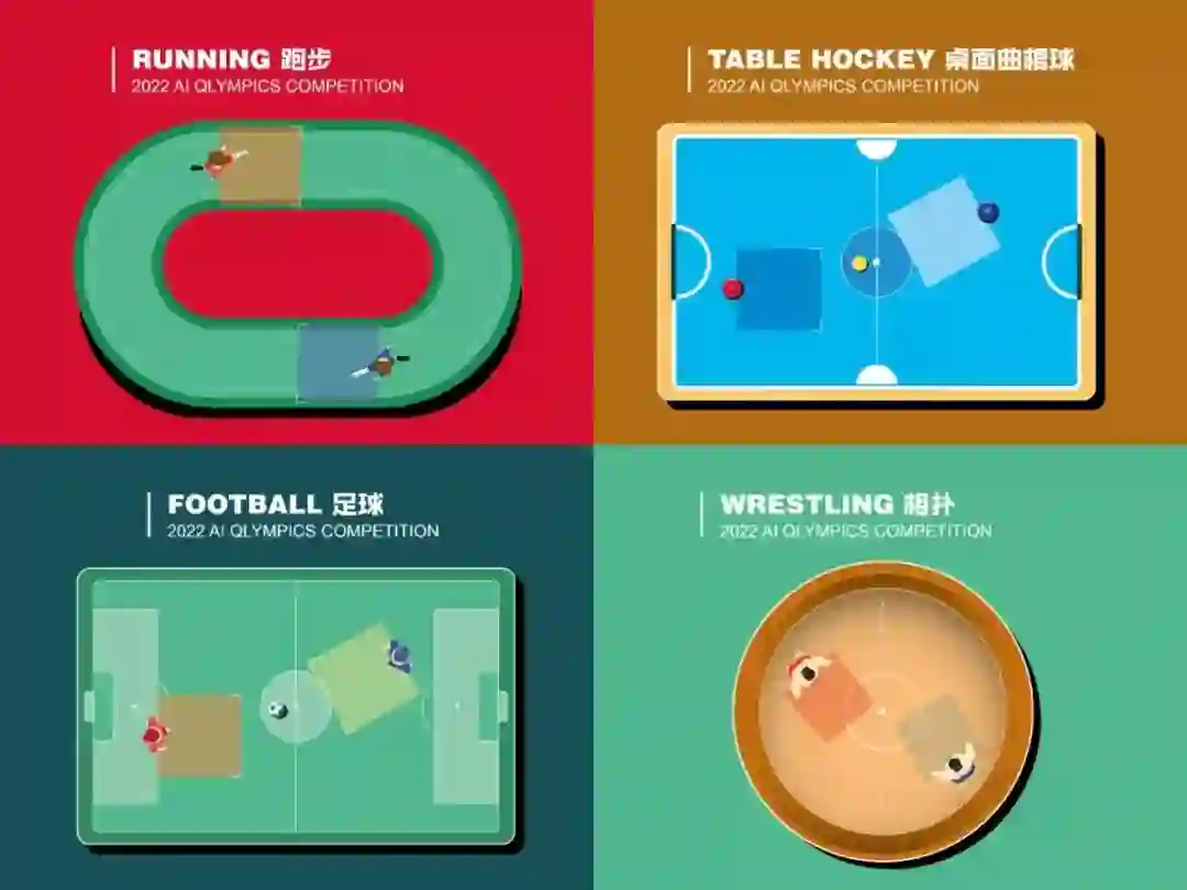 “AI奥林匹克竞赛”打造了丰富有趣的竞赛环境,包含足球、跑步、桌面曲棍球、相扑等项目,将在不同的环境中对参赛智能体进行测试,充分考察智能体泛化性,与广大参赛者一道推动通用决策智能体的研究。