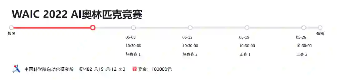与世界人工智能大会(WAIC)合作开办的第一阶段比赛现已开始报名,热身赛在即,快来加入吧!