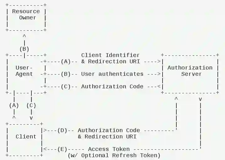 第一步,客户端的前端页面(图中UserAgent)将用户跳转到 授权服务器(Authorization Server)里进行授权,授权完成后,返回 授权码(Authorization Code)