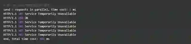相比实验1成功数增加了4个,这个我们设置的burst数目是一致的。具体处理流程是:1个请求被立即处理,4个请求被放到burst队列里,另外一个请求被拒绝。通过burst参数,我们使得Nginx限流具备了缓存处理突发流量的能力。