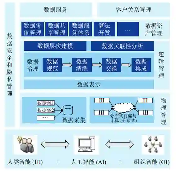 在数据的逻辑管理阶段,华谱系统将知识图谱技术、专家智能、组织智能等技术融入数据表示、数据治理等子模块中,协调逻辑管理整个流程。