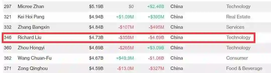 4.刘强东身价跌至47亿美元,年初至今蒸发49.8%