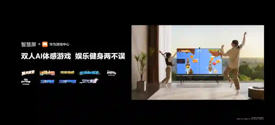 此外,华为智慧屏还支持10余款三维AI体感游戏,此类游戏基于摄像头AI算法,无需外接手机等其他设备。全新升级的双人追焦系统,可识别用户的体态动作,由此实现对游戏的精准操控。